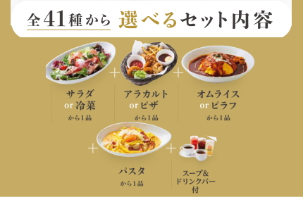 ※単品またはセットで付属しているドリンクバーをご注文1名様分につき、小学生未満のお子様は3名様分まで無料とさせていただきます。
